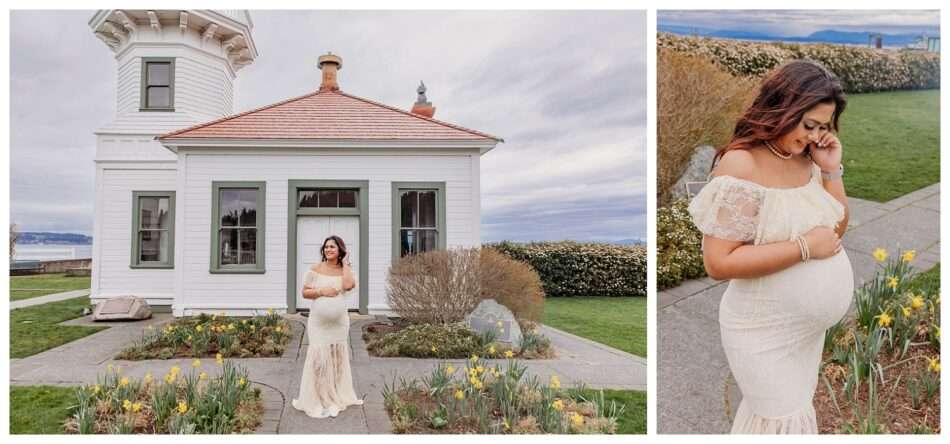 Set against the coastal backdrop of the historic Mukilteo Lighthouse, this session gave us everything we love: timeless beauty, ocean air, and the kind of golden light that feels like a quiet celebration of motherhood.
